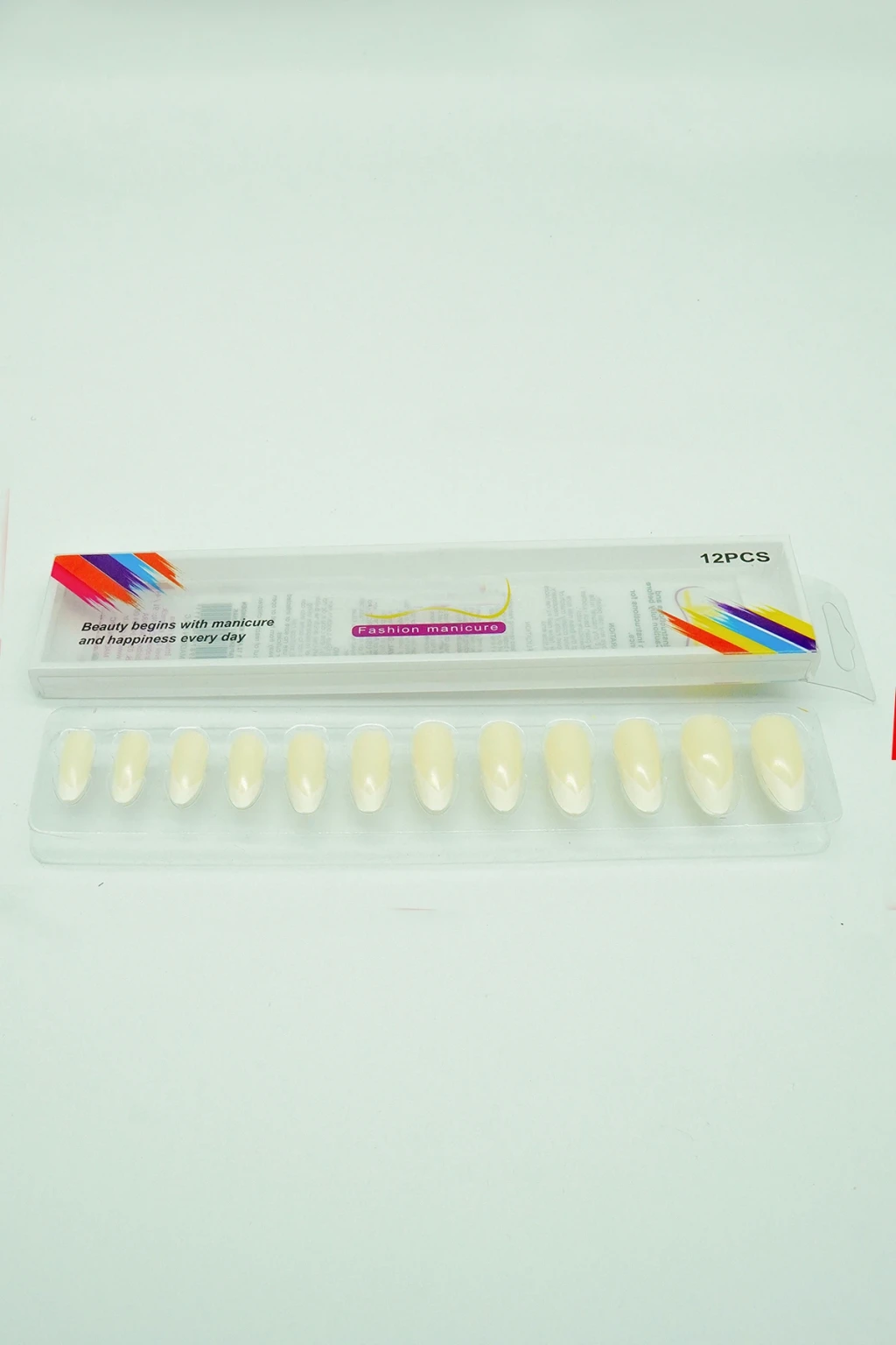 12 Adet Badem Tırnak Tak Ve Çık Kendinden Yapışkanlı Takma Tırnak Krem