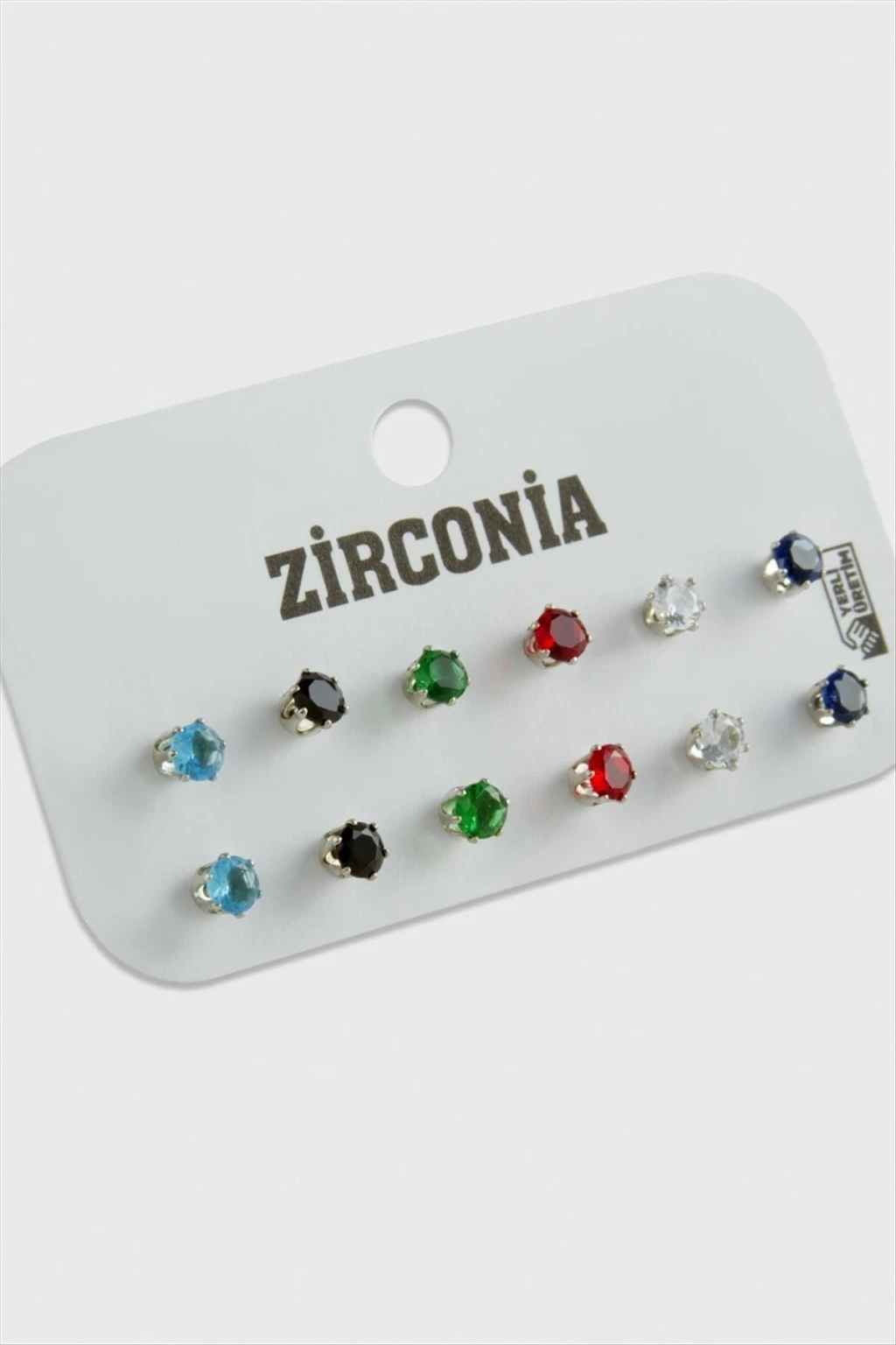 12 Adet Renkli Zirkon Tek Taşlı Küpe