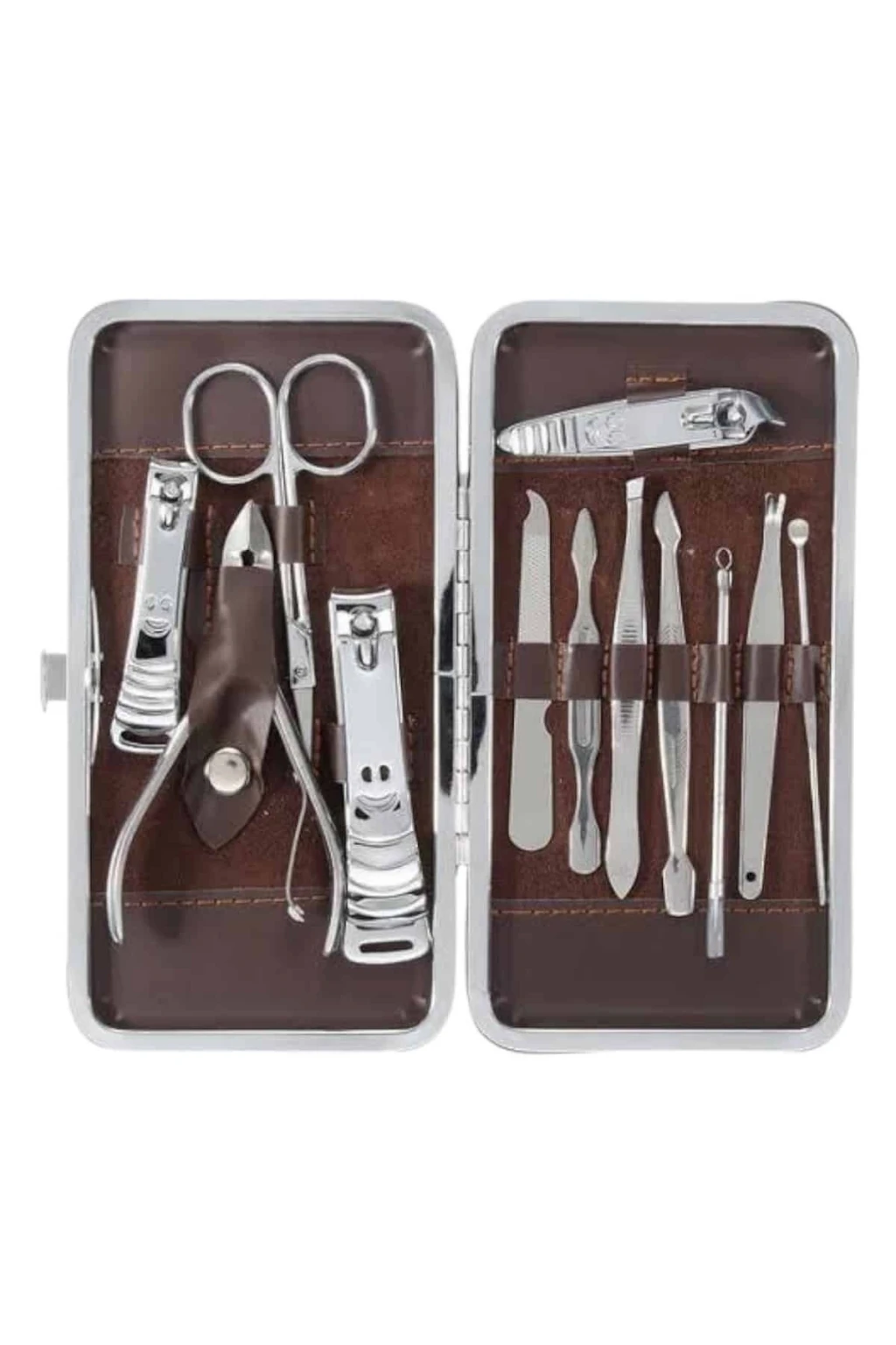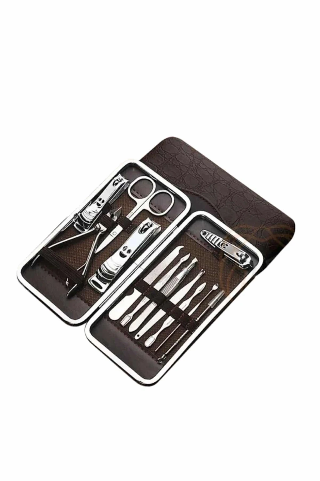 Özel deri çantalı bu hepsi bir arada bakım seti ile el ve ayak bakımınızı zahmetsizce yak kuaför masrafından kurtulabilirsiniz. Paslanmaz çelikten üretilmiş dayanıklı ve kaliteli atları sayesinde uzun ömürlü kullanım sunan bu set, taşınabilir boyutu ile çantanızda rahatlıkla taşınabilir ve seyahatlerinizde size eşlik eder. Setin içerisinde kulak çekme atı, çok amaçlı makas, manikür makası, üç farklı tırnak makası/düzeltici, pense, kir temizleme atı, kaş cımbızı, manikür bıçağı, tırnak törpüsü ve akne iğnesi bulunur. Şık ve kullanışlı deri çantasıyla düzenli bir şekilde saklanabilen bu set, hem günlük kullanım hem de hediye alternatifi olarak mükemmel bir seçenektir.
