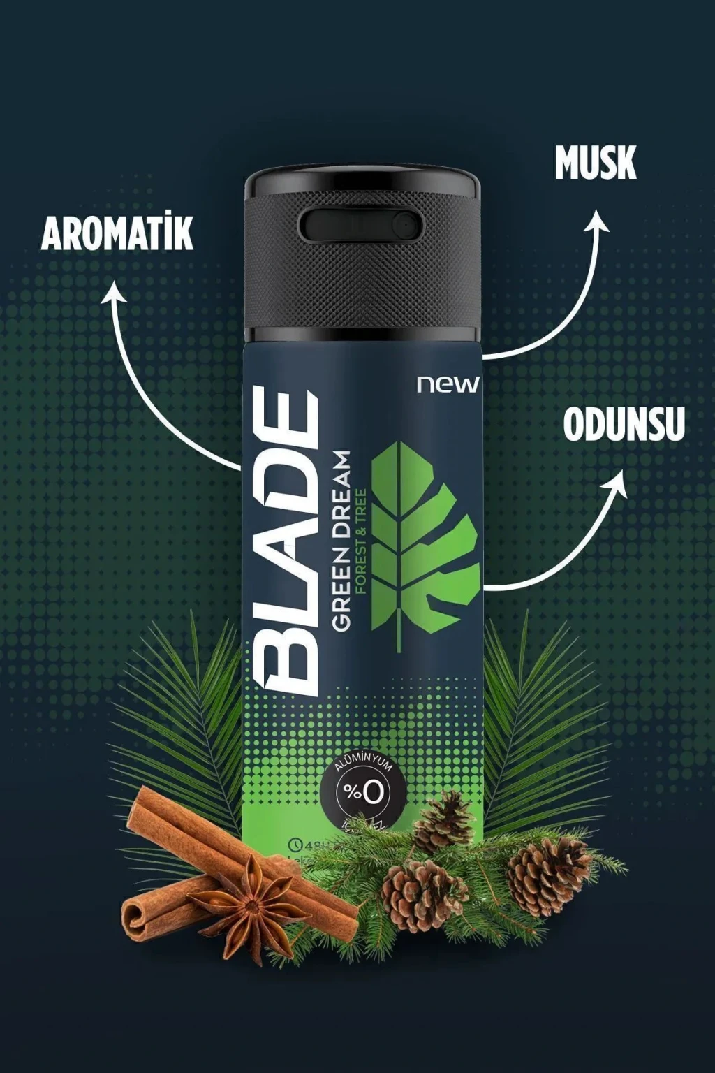3 Adet Blade Green Dream Erkek Deodorant 150 Ml Hızlı Kurur, Leke Bırakmaz