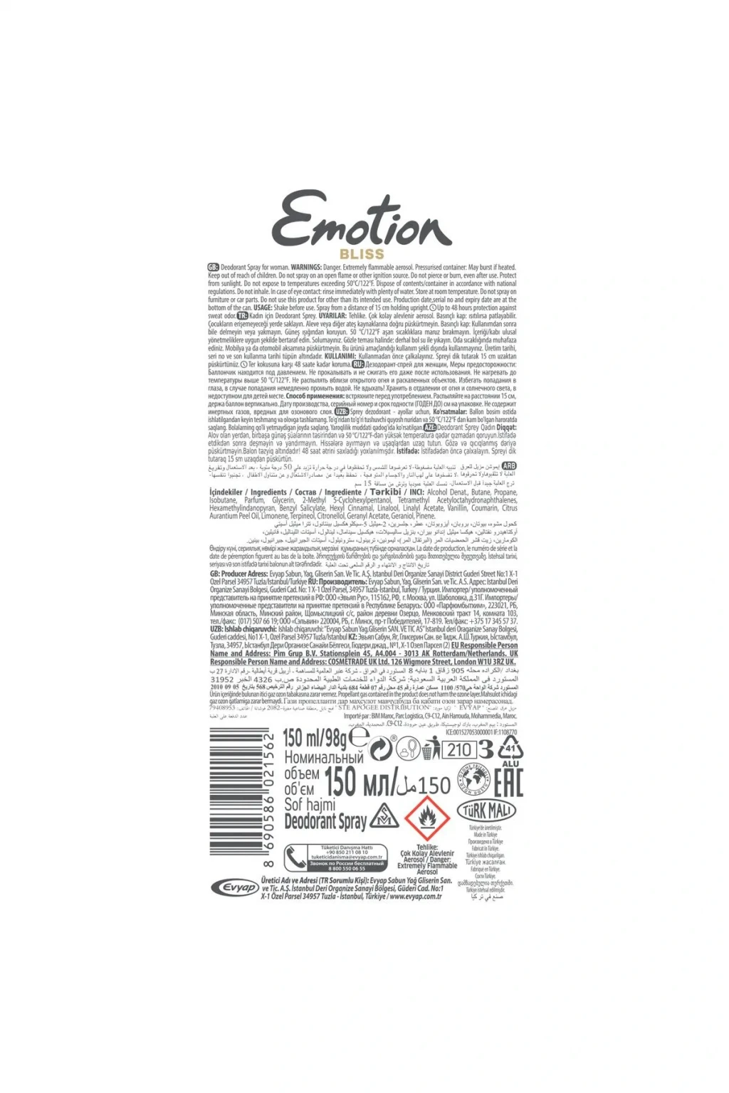 Emotion Bliss Kadın Vegan Deodorant 150 Ml Hızlı Kurur , Leke Bırakmaz