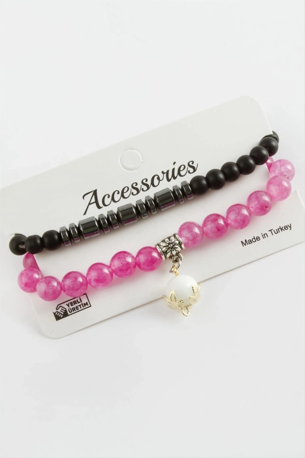Doğaltaş Bileklik; Ürün malzemesi ceyt ve hematit doğaltaştan imal edilmiştir. Ürün malzemesi misina üzerine dizilmiştir. Ürün 1 kartta 2 adet bileklik olarak gönderilecektir.