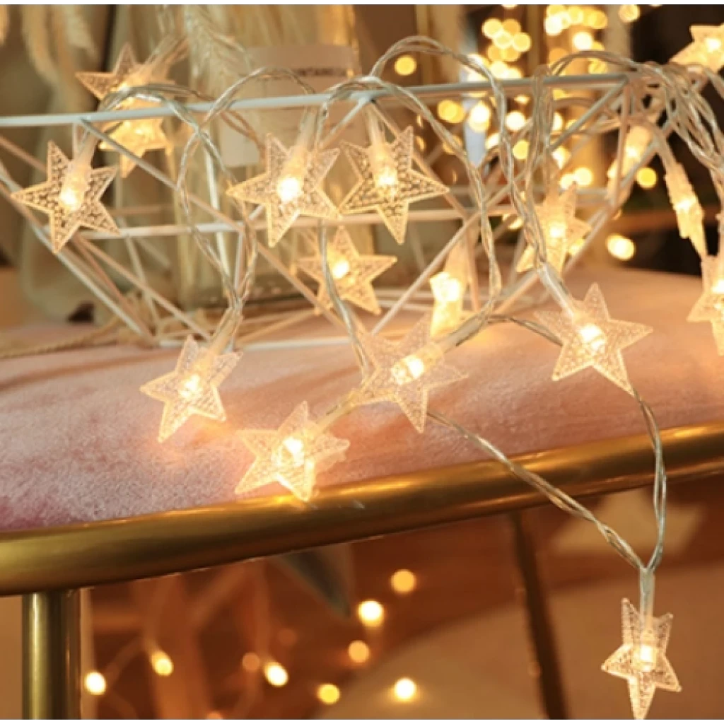 3M 20 LED PİLLİ 2 KADEMELİ YILDIZ LED (GÜN IŞIĞI)Ürün Özellikleri3 metre uzunluğundaki yıldız şeklinde 20 LED, gün ışığı renginde sıcak bir aydınlatma sunar. Pil ile çalışan bu dekoratif ışık, enerji tasarrufludur ve 2 kademeli aydınlatma modu ile farklı kullanım seçenekleri sunar. Yıldız figürleri ile odanızı, balkonunuzu veya özel etkinliklerinizi şık bir şekilde süsleyebilirsiniz. Hafif ve taşınabilir yapısı sayesinde kolayca monte edilebilir. İç mekan süslemeleri için idealdir.Paket İçeriği1 adet 3m 20 LED yıldız ışık (pilli, 2 kademeli)