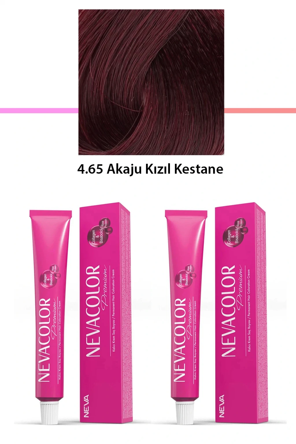 2 li Set Premium 4.65 Akaju Kızıl Kestane - Kalıcı Krem Saç Boyası 2 X 50 g Tüp