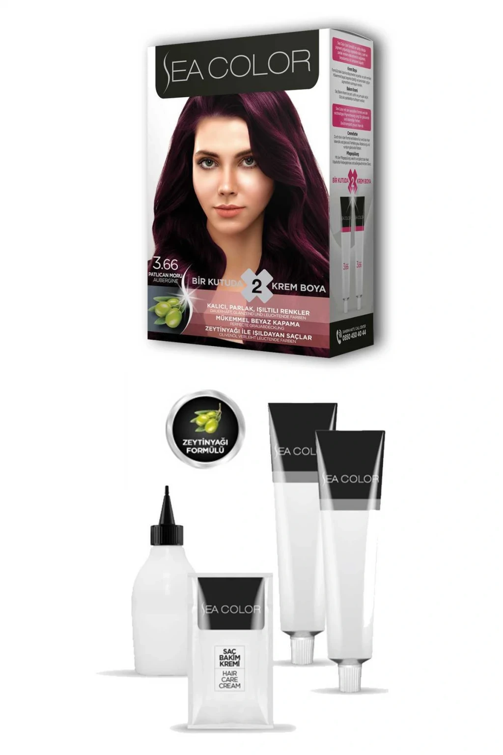 2 Tüp Krem Saç Boyası Seti Patlıcan Moru No:3.66