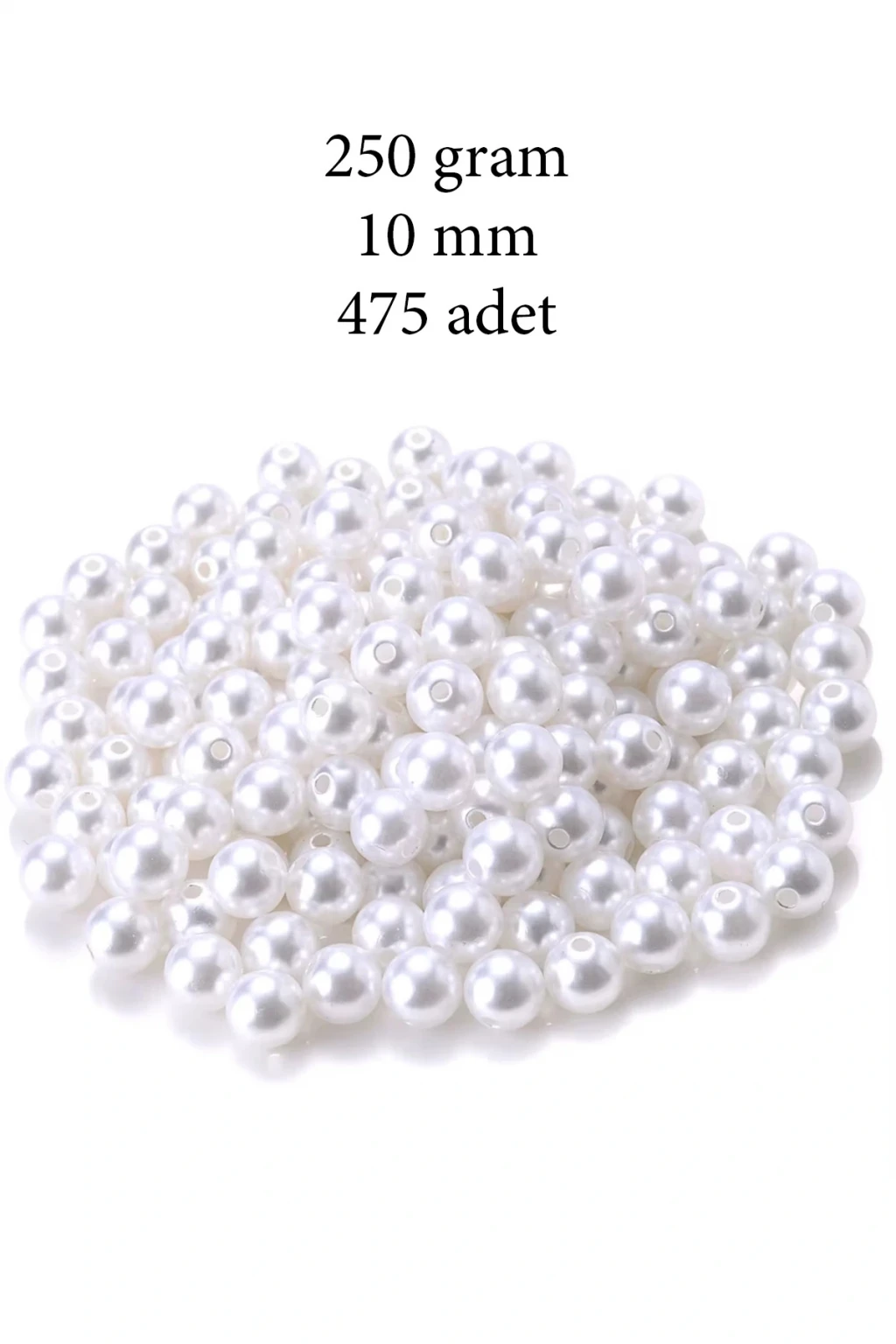 250 gram 10mm Beyaz Renk Plastik İnci Boncuk Çanta ve Takı Yapım Boncuğu (~475 adet)