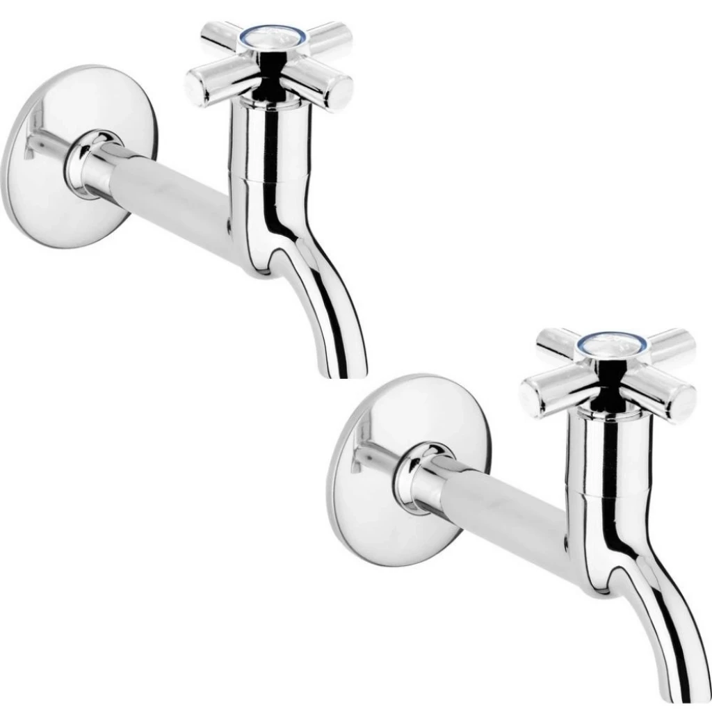 2li Artı Aç Kapa 4 Kollu Krom Çevirveli Musluk Duvardan Tek Girişli