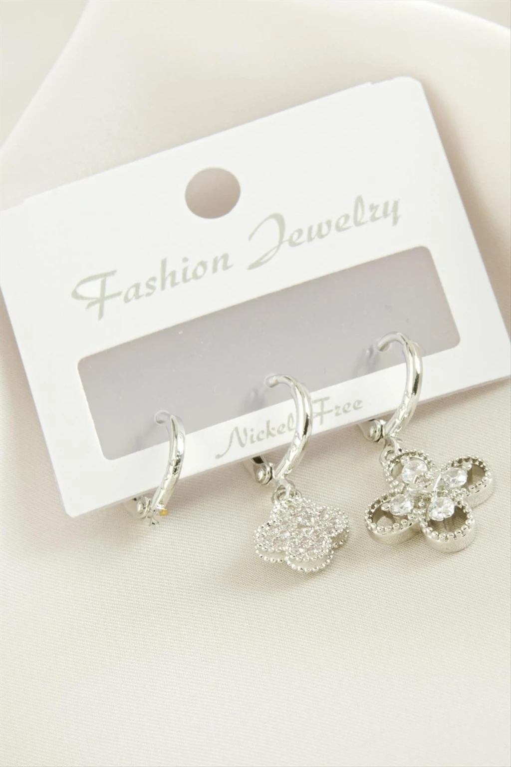3 Adet Çiçek Zirkon Taşlı Küpe