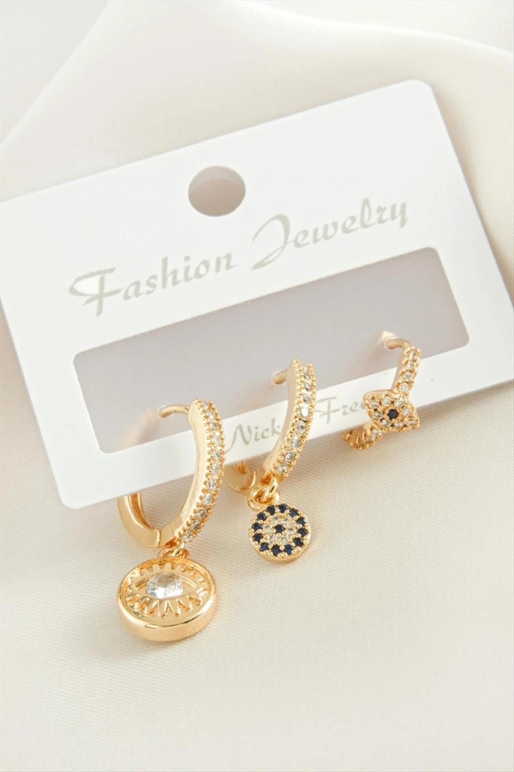 3 Adet Göz Zirkon Taşlı Küpe