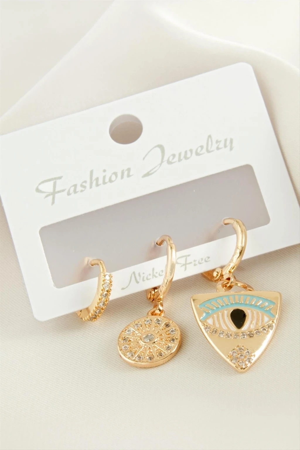 3 Adet Göz Zirkon Taşlı Küpe