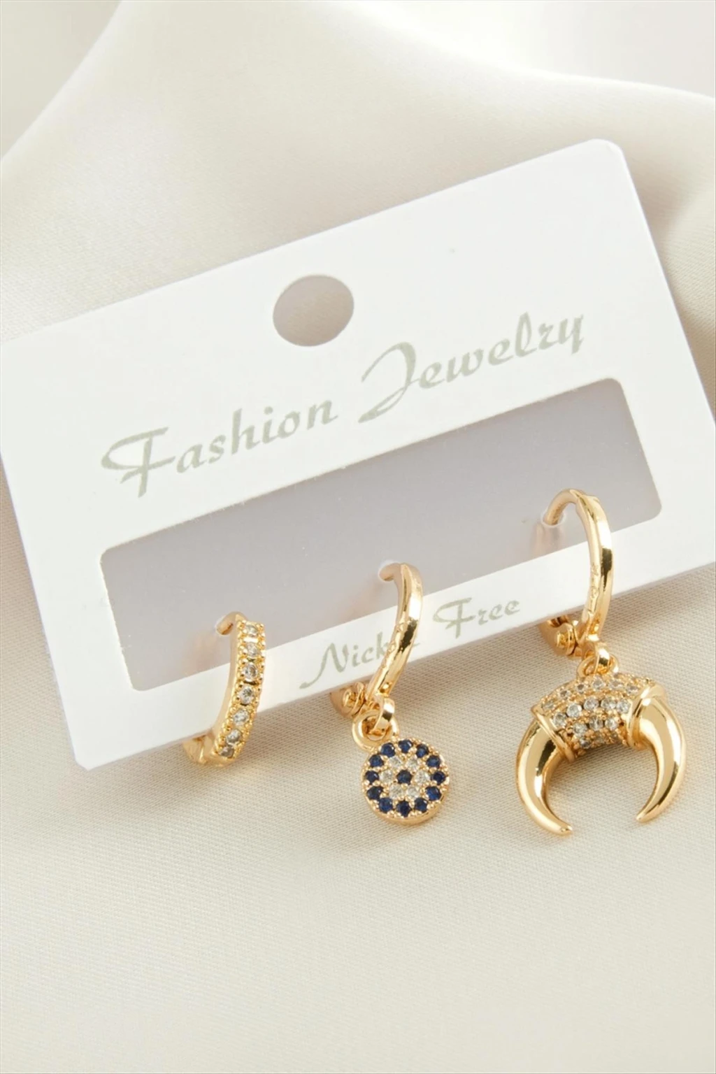 3 Adet Hilal Zirkon Taşlı Küpe