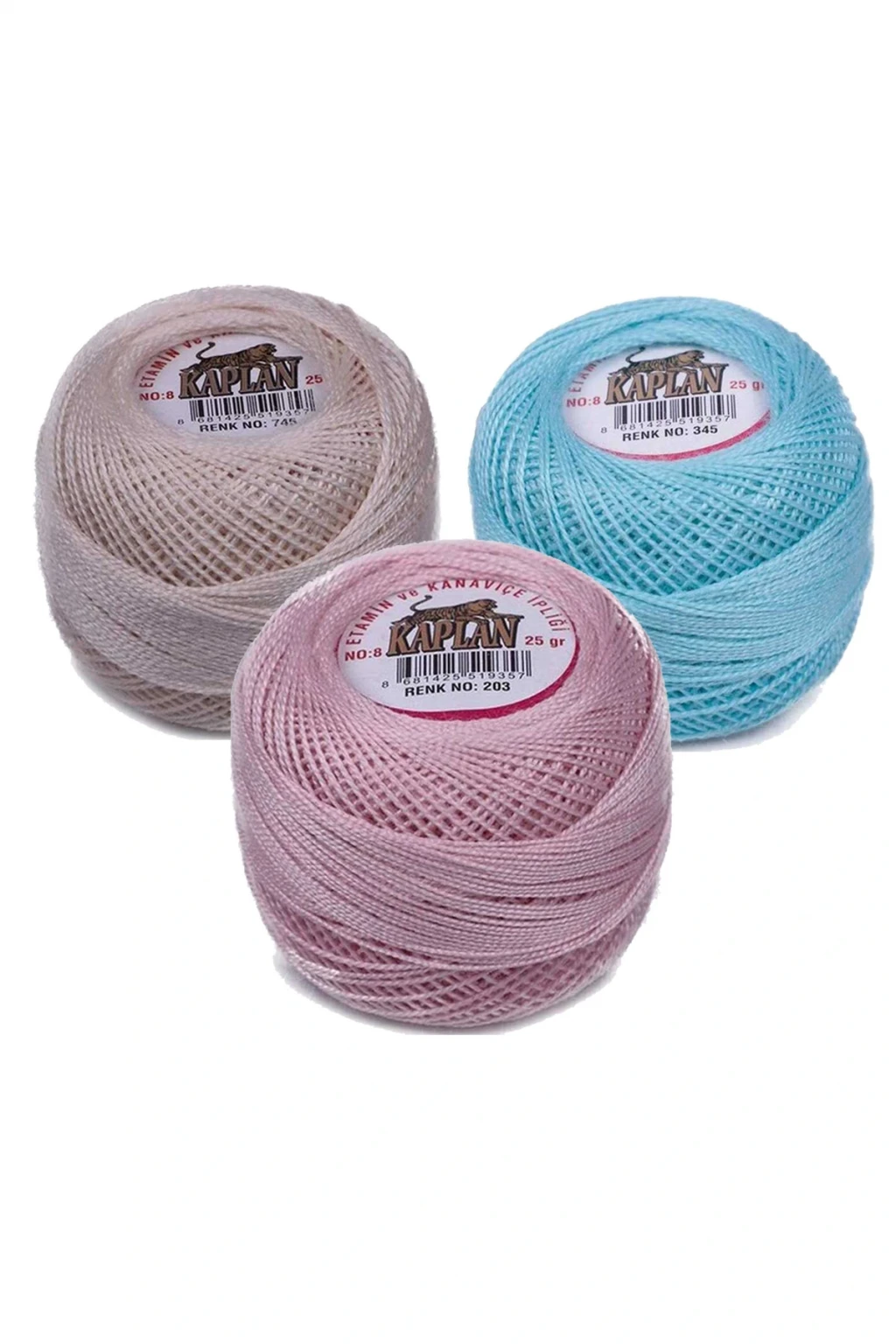 3 Adet Kaplan Etamin Ve Kanaviçe İpi 8 No Kod/Renk: 745 - 345 - 203 - Ryl
