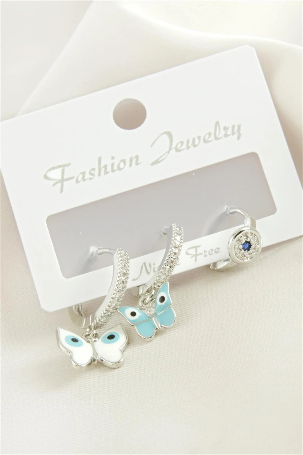 3 Adet Kelebek Zirkon Taşlı Küpe