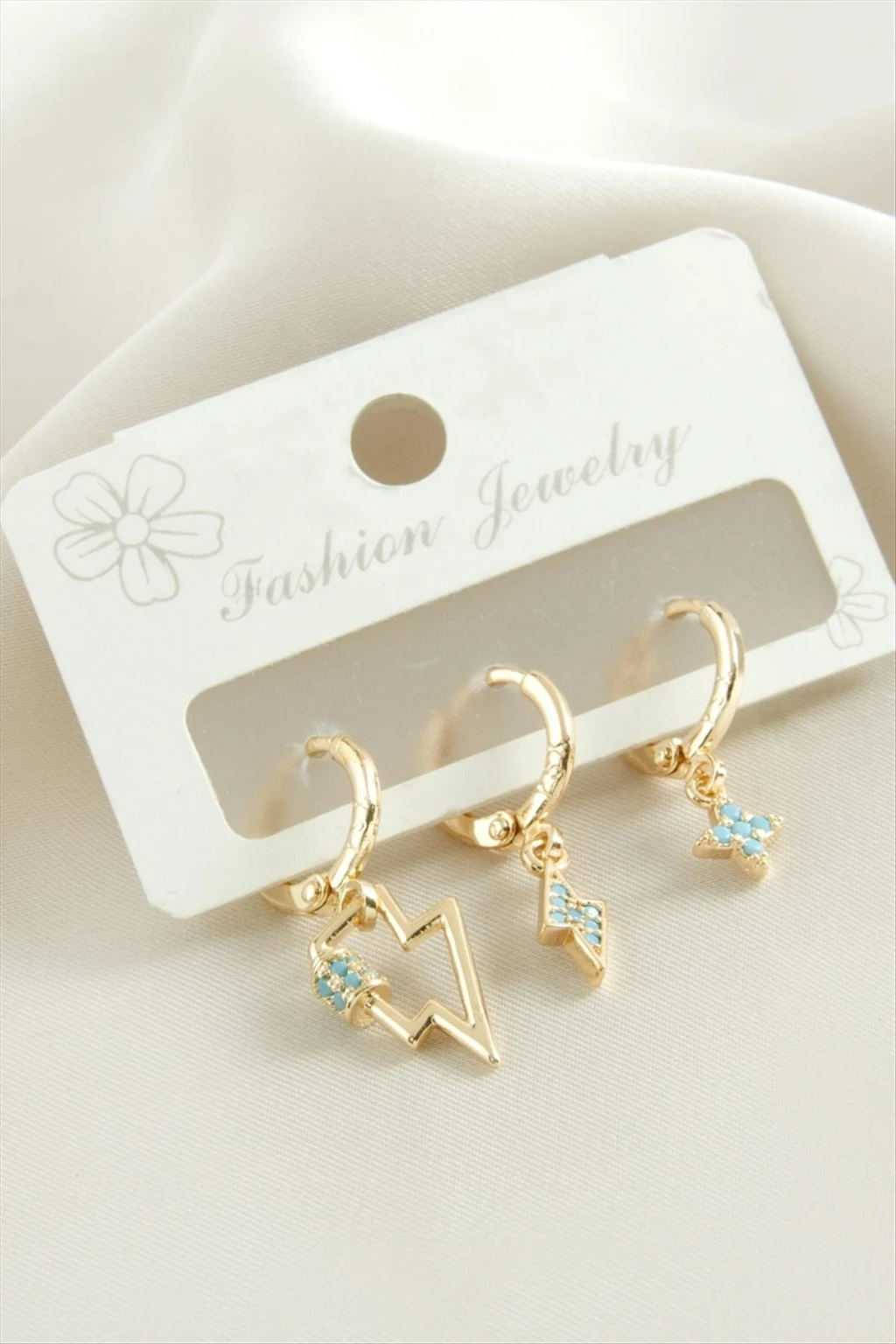 3 Adet Şimşek Zirkon Taşlı Küpe