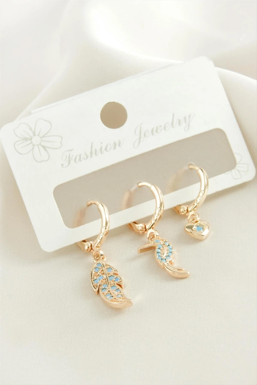 3 Adet Yaprak Zirkon Taşlı Küpe