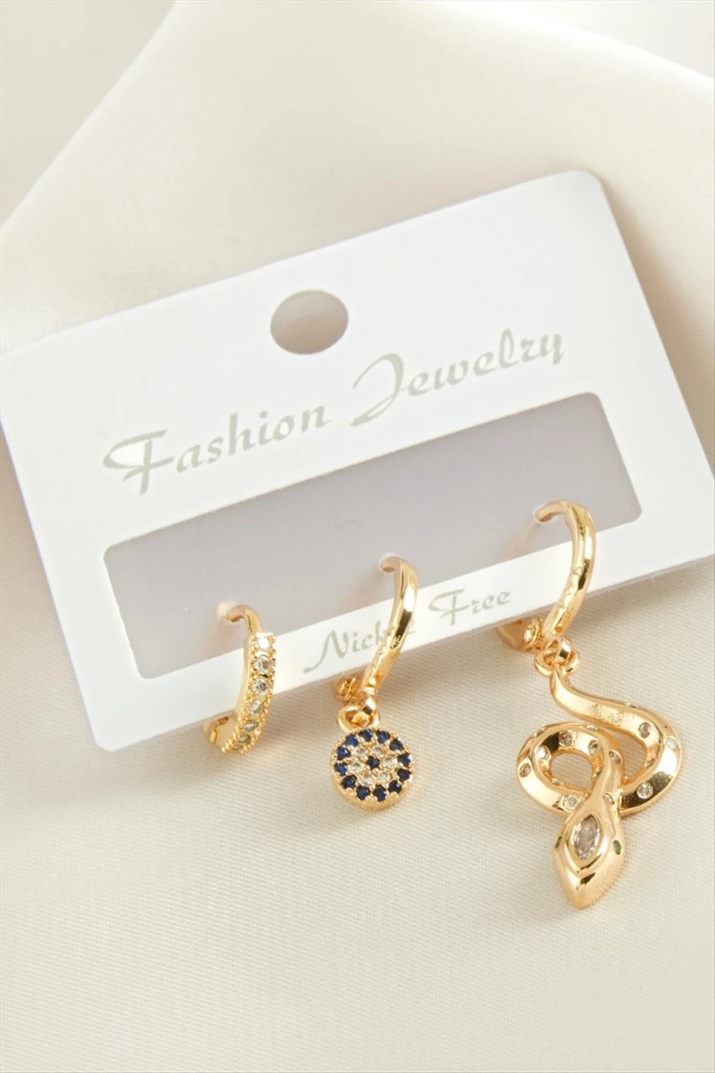3 Adet Yılan Zirkon Taşlı Küpe