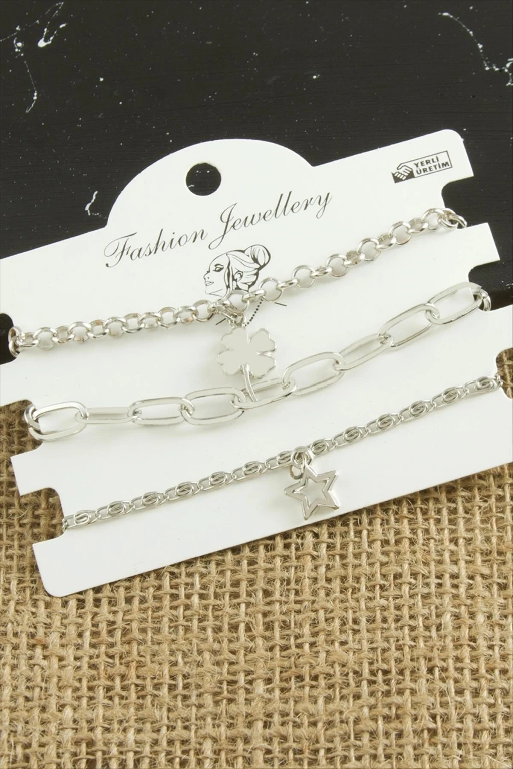 Bileklik; Ürün malzemesi metaldir. Kartlıdır. 1 kartta 3 adet zincir bileklik olarak gönderilecektir. Zincir uzunluğu 19 cmdir.