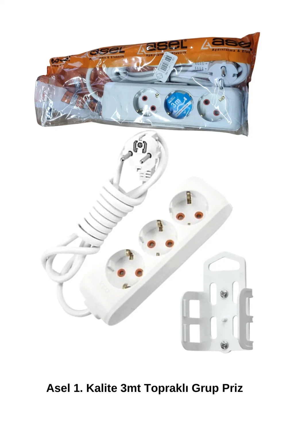 3 Metre Askı Aparatlı Topraklı 3lü Grup Priz Royaleks-AST303