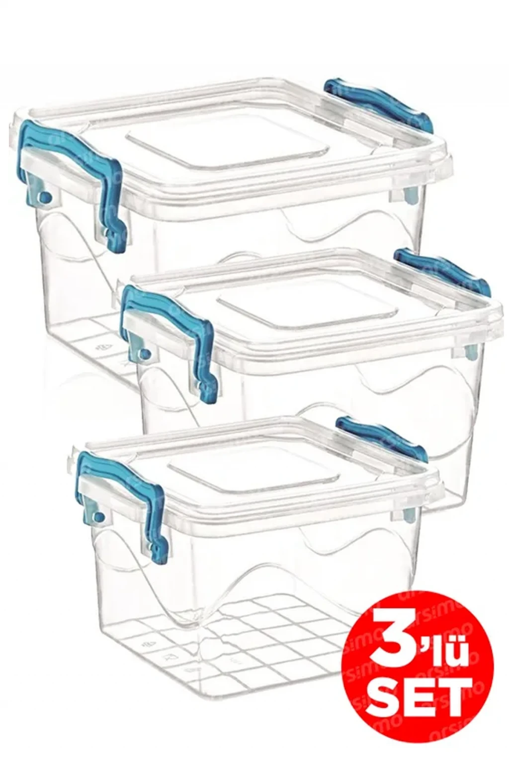 3'lü Kare Kelepçeli Şeffaf Saklama Kabı Seti | Kapaklı Saklama Kabı Set 2.4 Lt - 1.2 Lt - 550 Ml Royaleks-82111