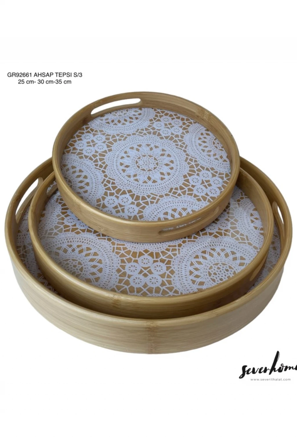 3'lü Yuvarlak Ahşap Tepsi Royaleks-SVR-GR92661