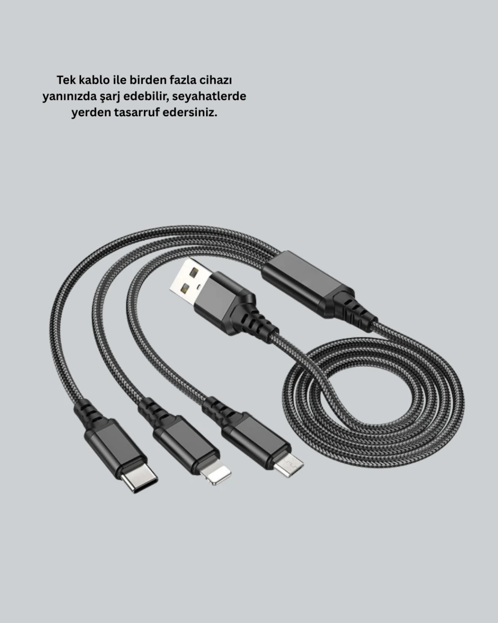 3’ü 1 Arada Hızlı Şarj Kablosu – iOS Android Type-C Uyumlu