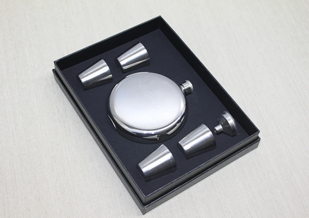4 Shot Bardaklı Matara Seti Yuvarlak Çelik