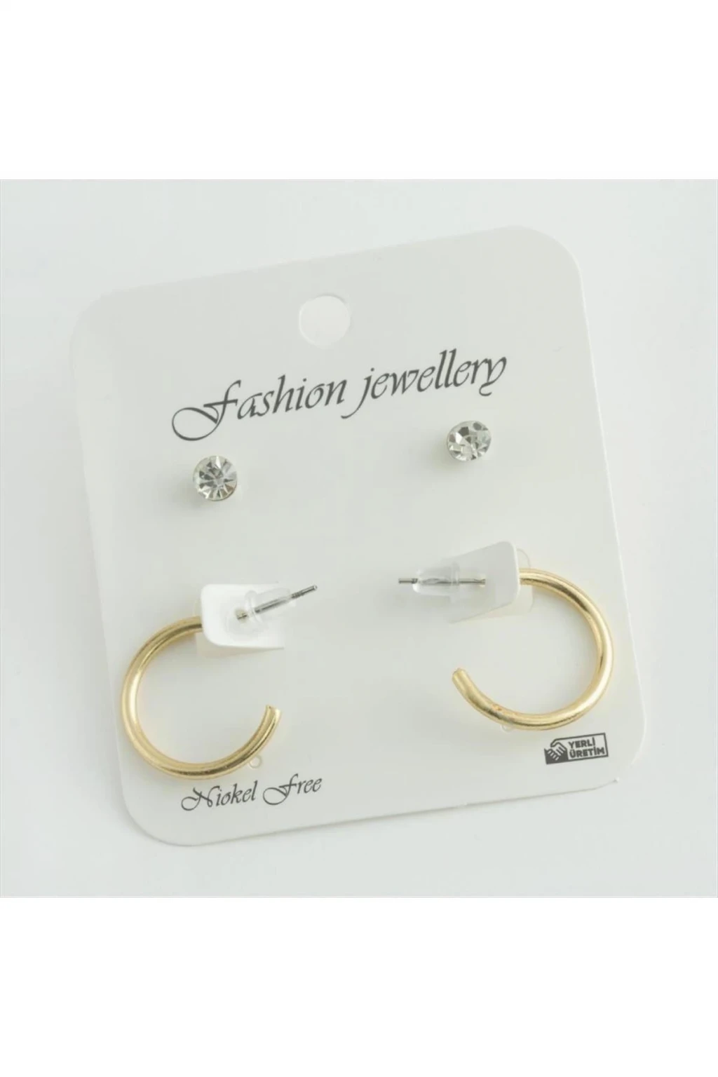 3 Adet Hilal Yıldız Zirkon Taşlı Küpe