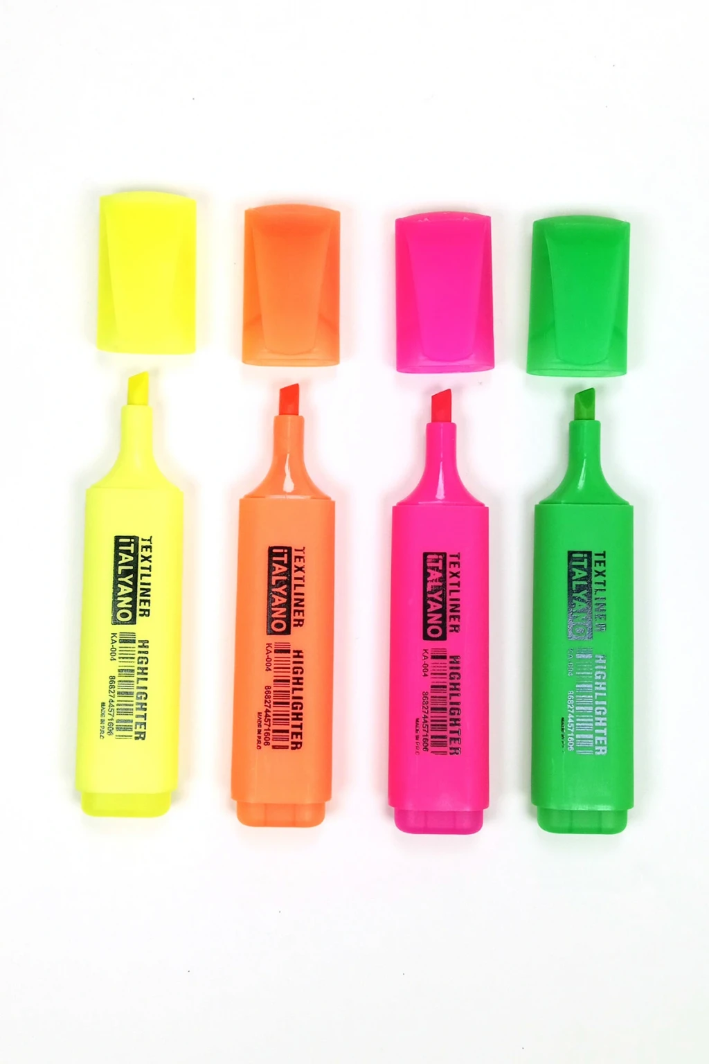 4'lü Neon Renk İtalyano Fosforlu Kalem Ergonomik Tasarım Kolay Kullanım Fosforlu İşaret Kalemi