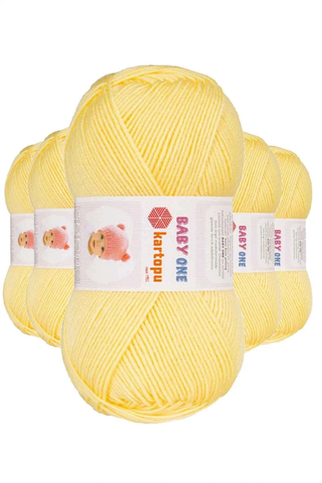 5 Adet Baby One Tüylenmeyen El Örgü İpi Yünü Açık Sarı K331