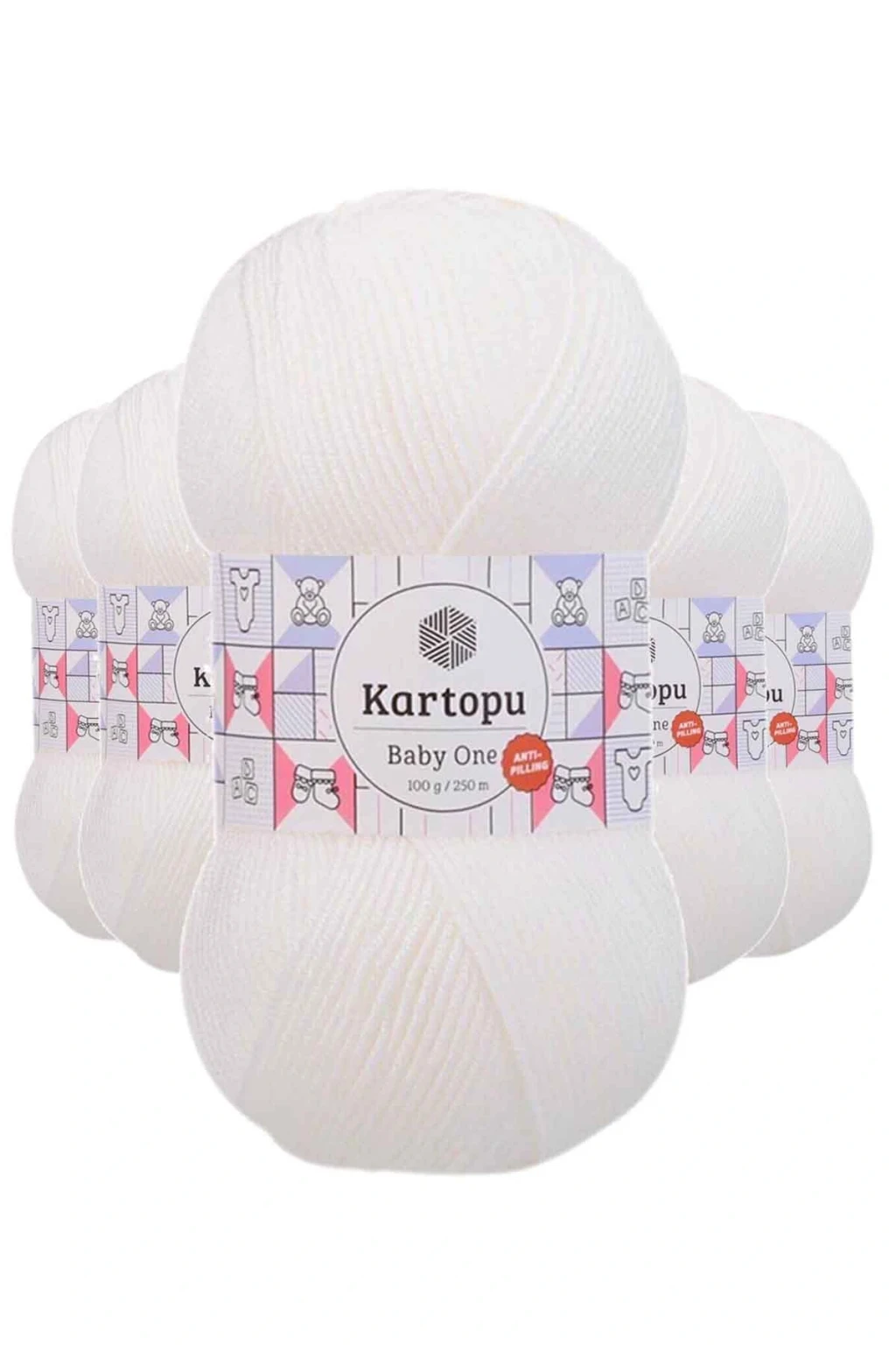 5 Adet Baby One Tüylenmeyen El Örgü İpi Yünü Kar Beyaz K010