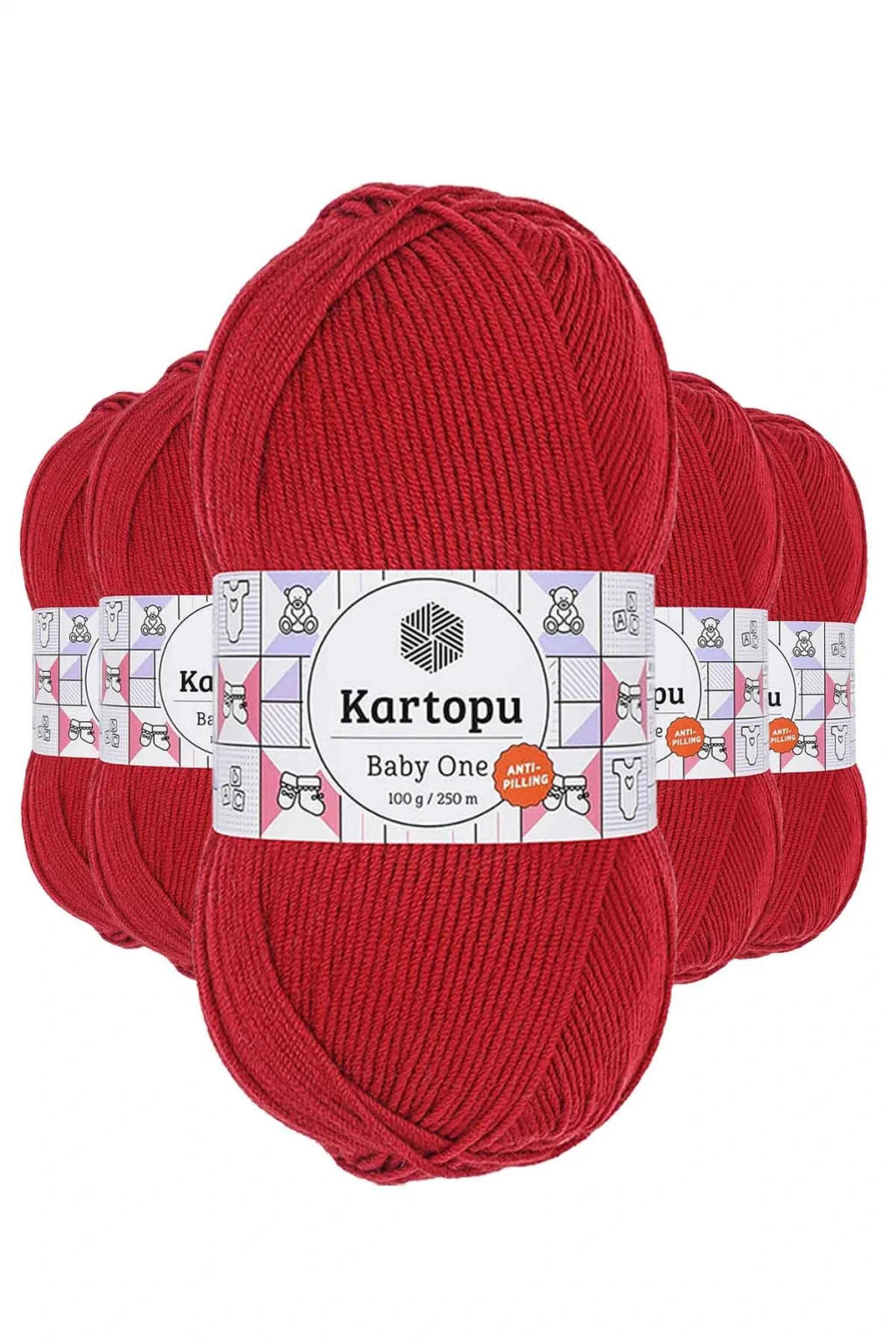 5 Adet Baby One Tüylenmeyen El Örgü İpi Yünü Kırmızı K125