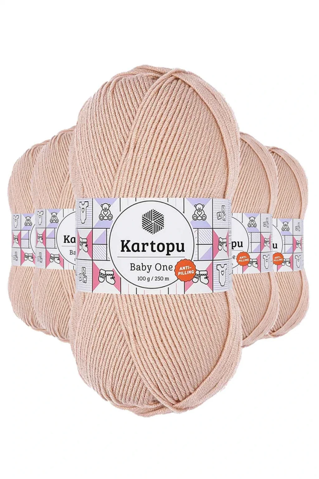 5 Adet Baby One Tüylenmeyen El Örgü İpi Yünü Pudra K1873