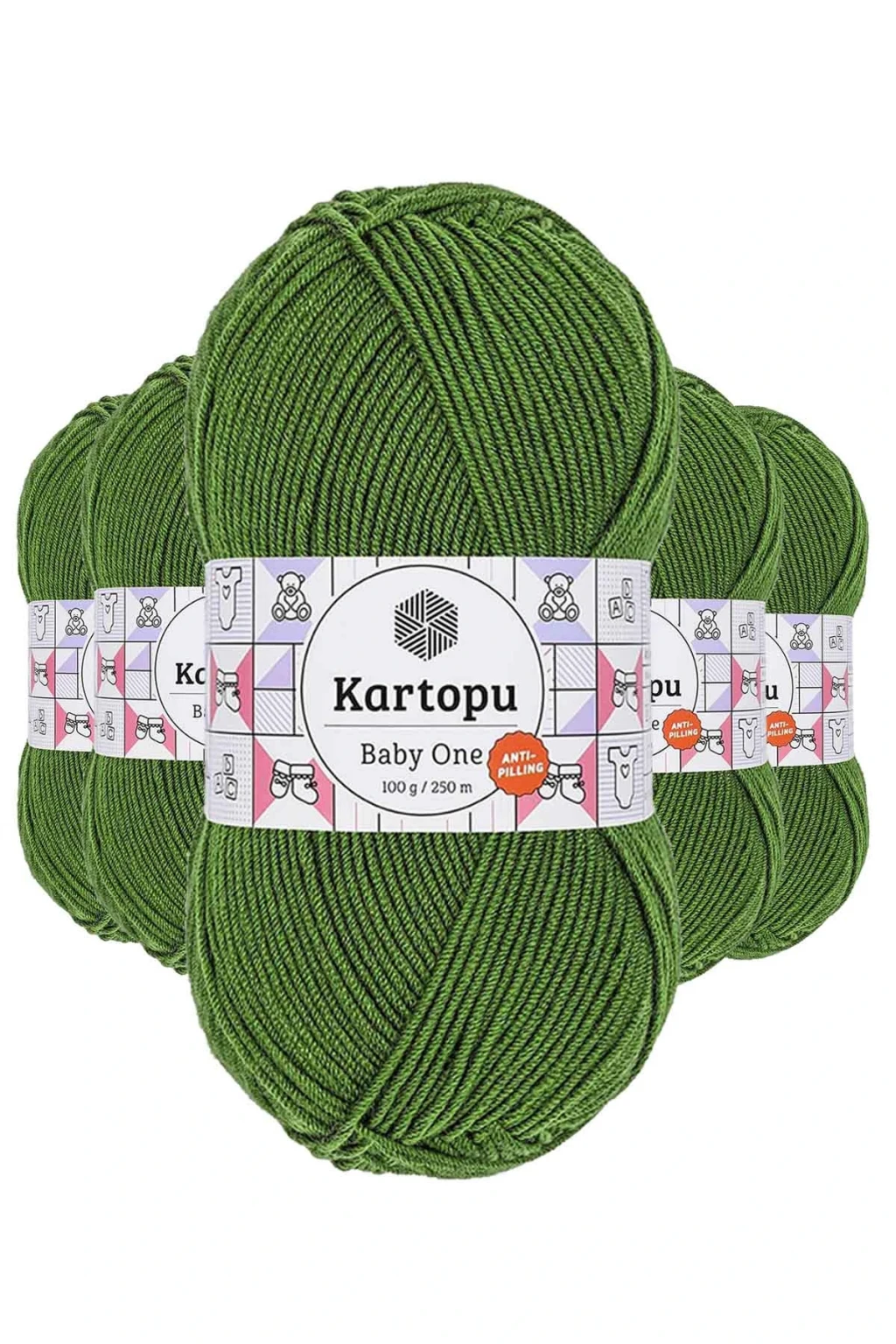 5 Adet Baby One Tüylenmeyen El Örgü İpi Yünü Yeşil K1391