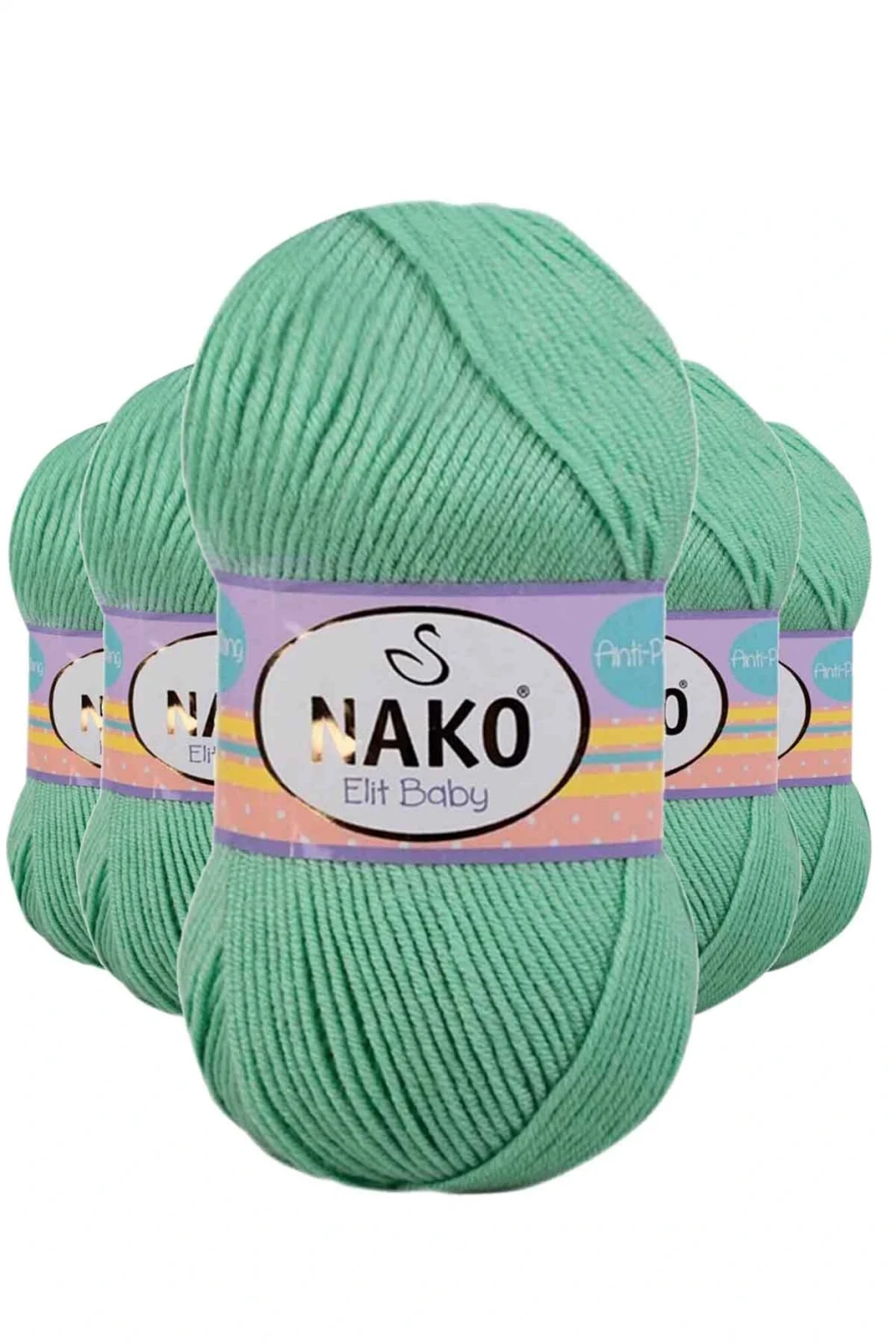 5 Adet Elite Baby El Örgü İpi Tüylenmeyen Bebek Yünü Siyam Yeşili 10001