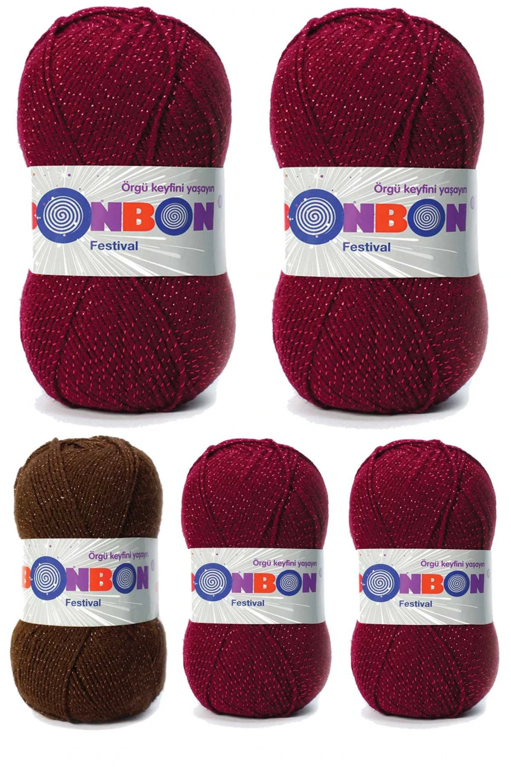 5 Adet Festival Simli Örgü İpi Yünü Renk No:220