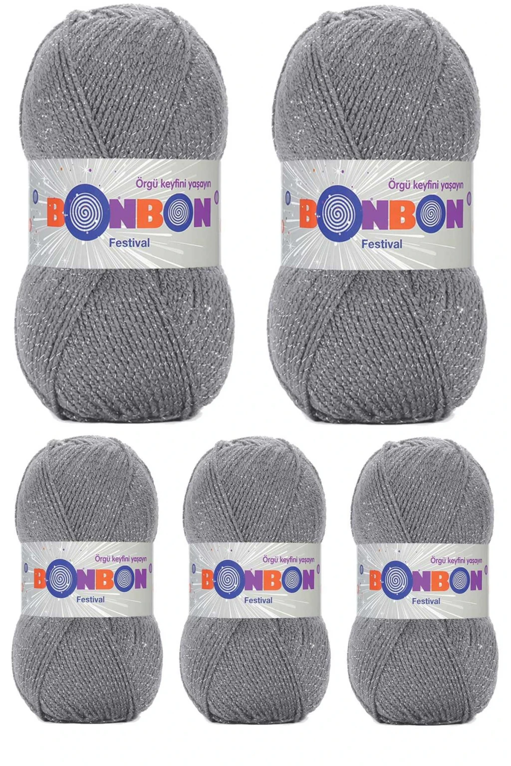 5 Adet Festival Simli Örgü İpi Yünü Renk No:233