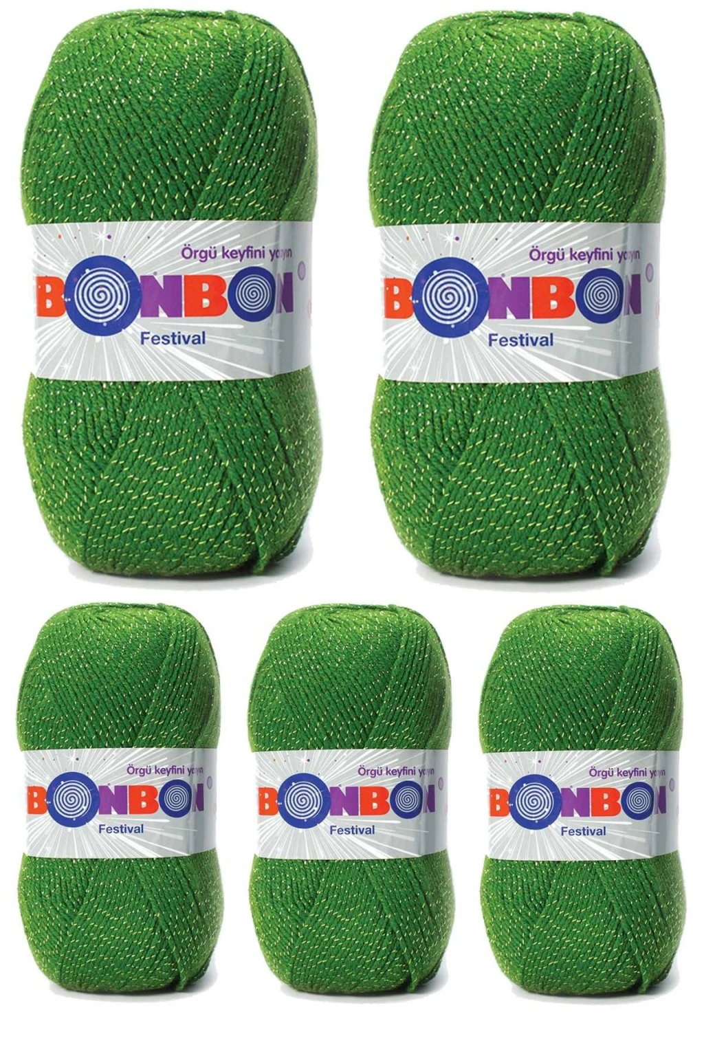 5 Adet Festival Simli Örgü İpi Yünü Renk No:235