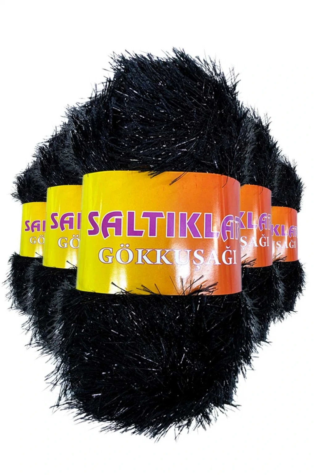5 Adet Gökkuşağı El Örgü İpi Yünü SİYAH