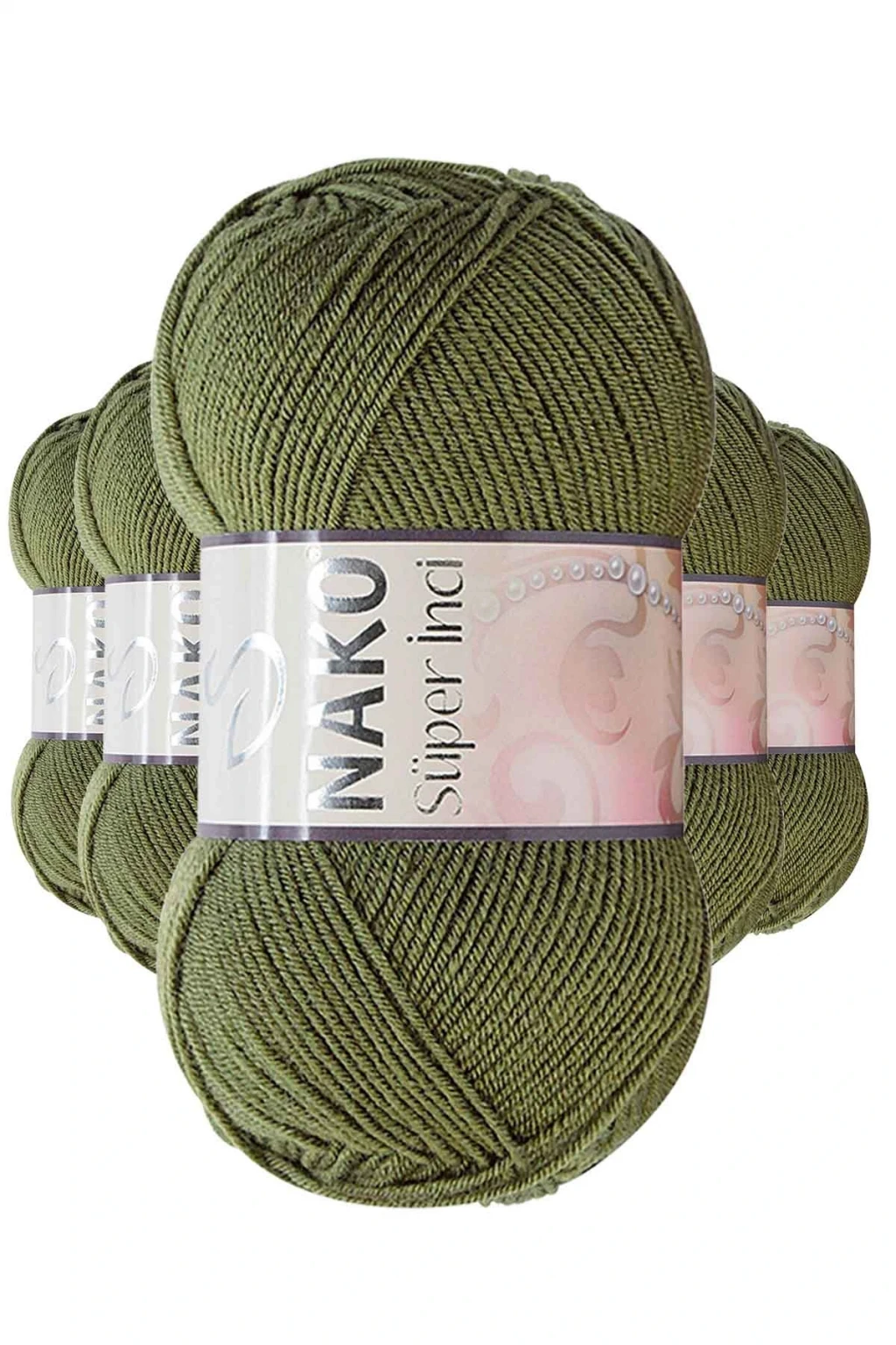 5 Adet Süper İnci El Örgü İpi 100 gr Haki 4234