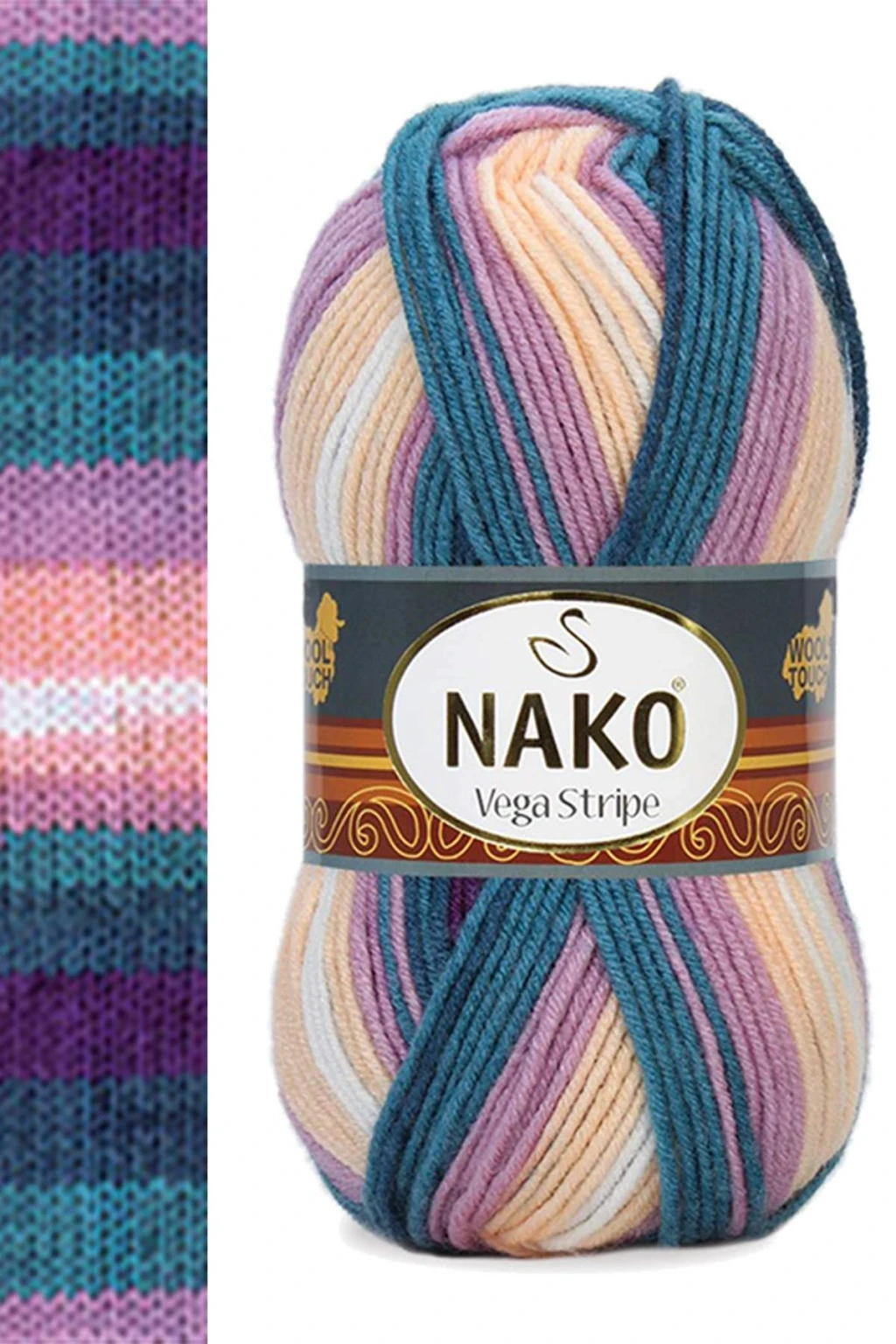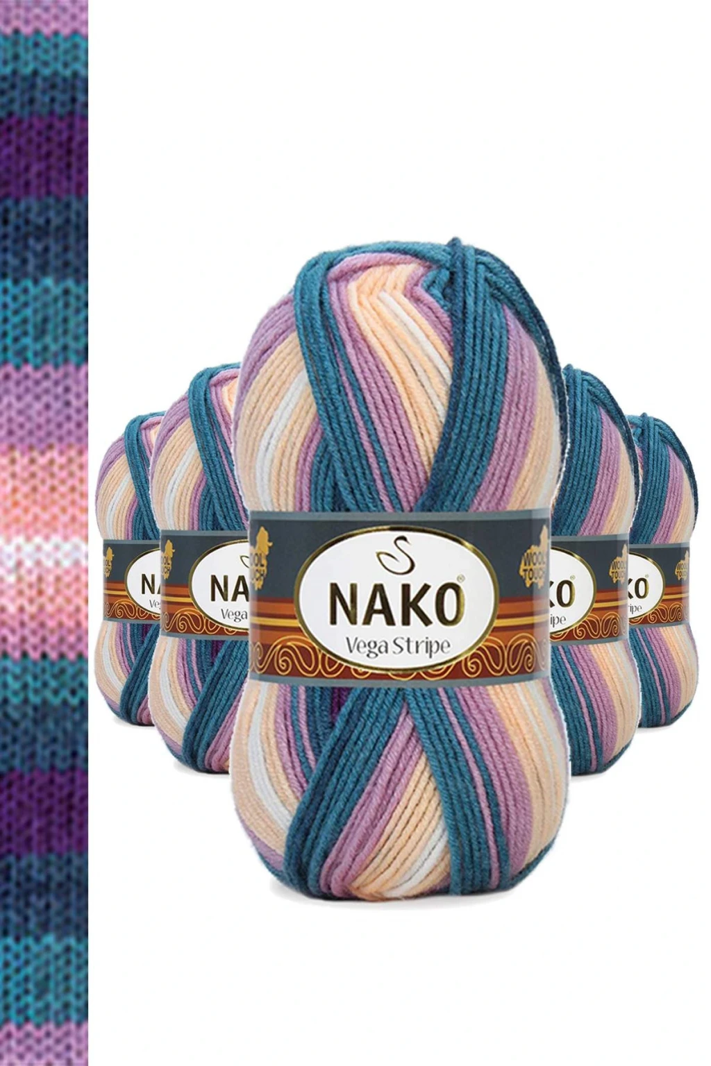 5 Adet Vega Stripe Premium Akrilik El Örgü İpi Yünü No: 82416