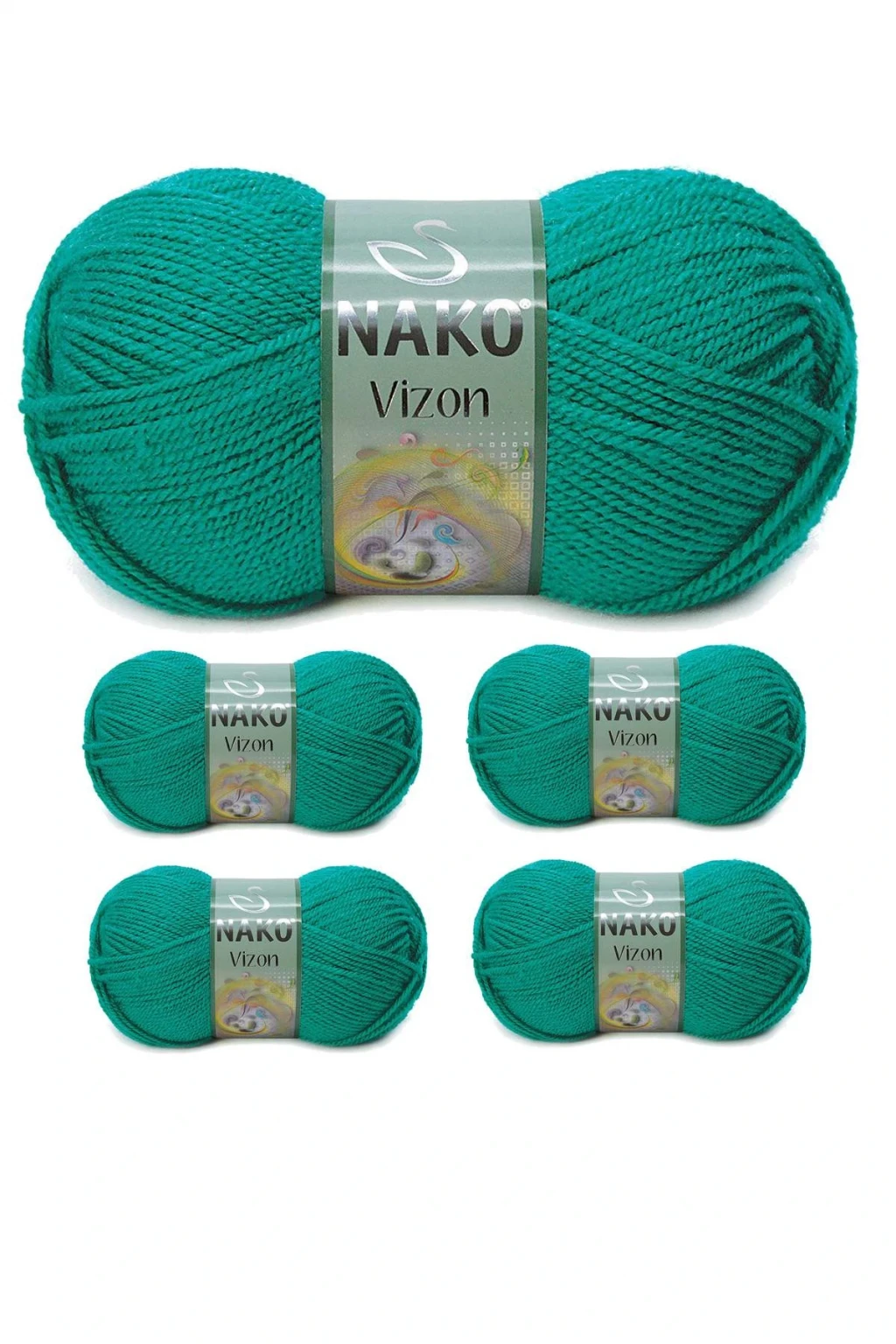 5 Adet Vizon Premium Akrilik El Örgü İpi Yünü Renk No:181 Ördek Başı Yeşil