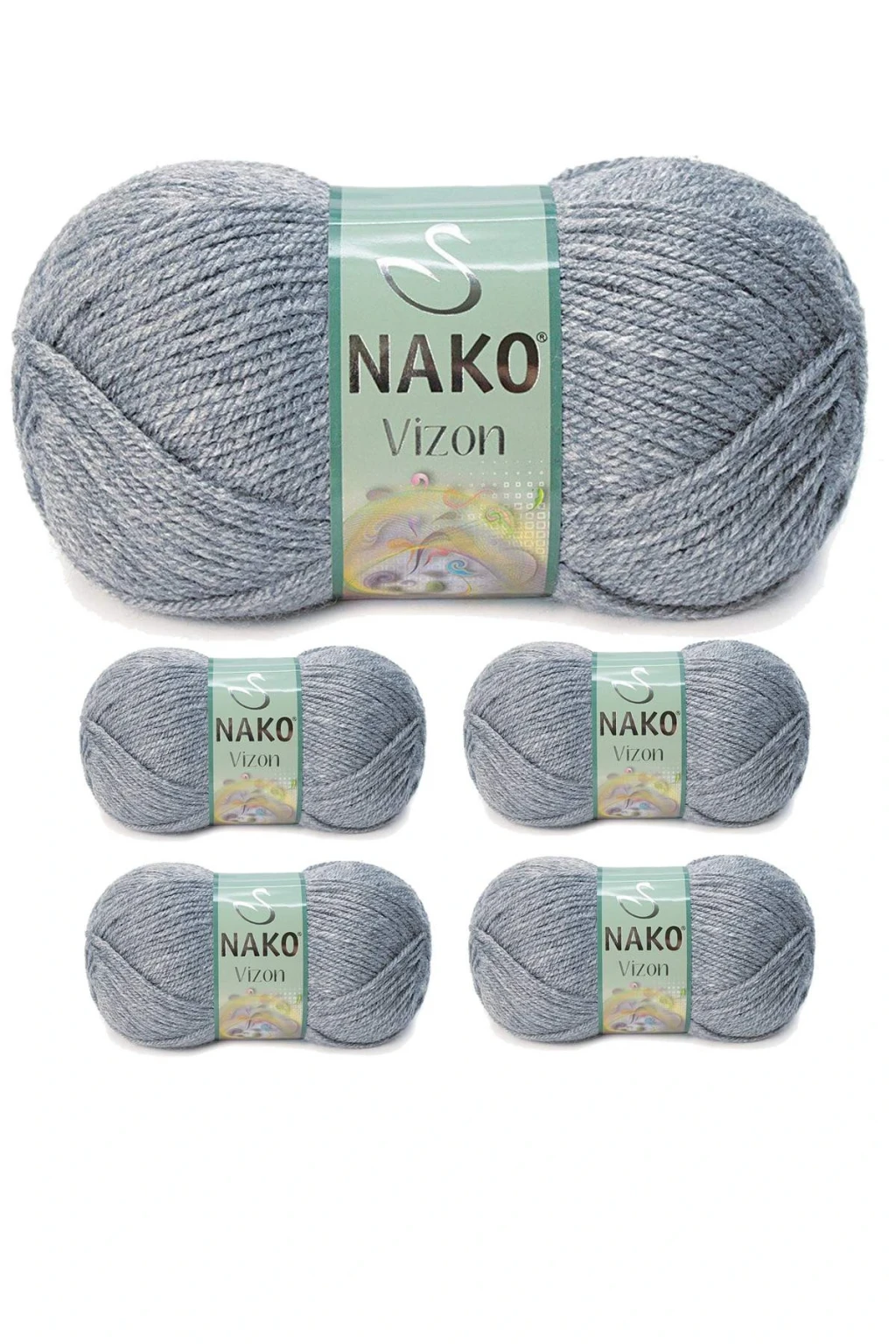 5 Adet Vizon Premium Akrilik El Örgü İpi Yünü Renk No:194 Sis Gri