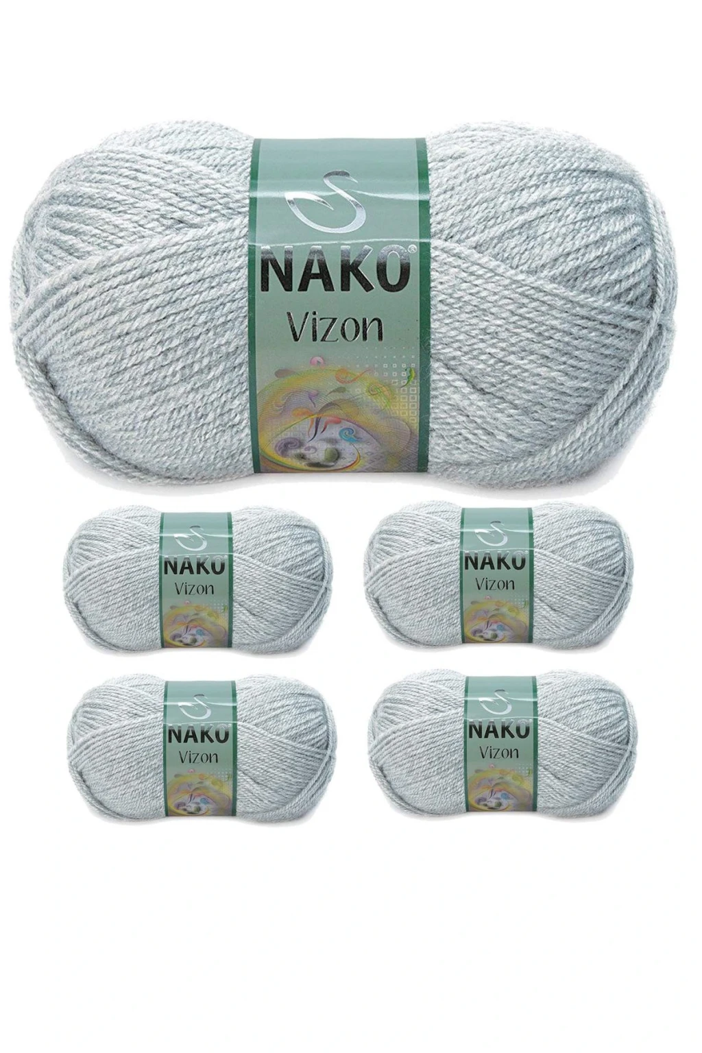 5 Adet Vizon Premium Akrilik El Örgü İpi Yünü Renk No:195 Açık Gri Melanj