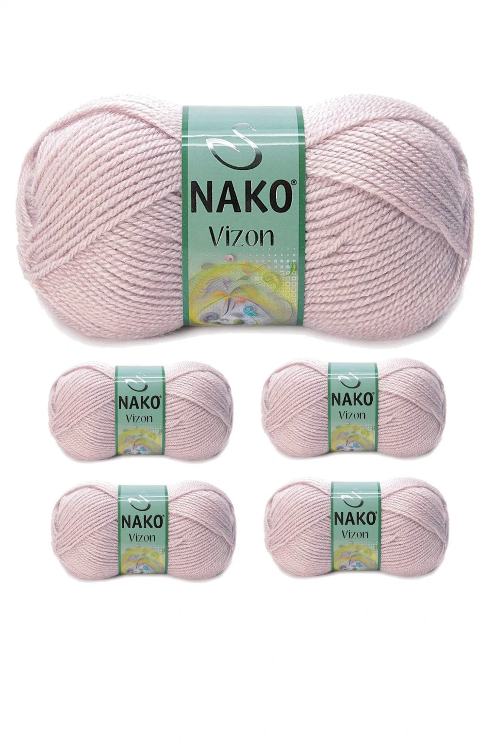 5 Adet Vizon Premium Akrilik El Örgü İpi Yünü Renk No:318 Gül Goncası