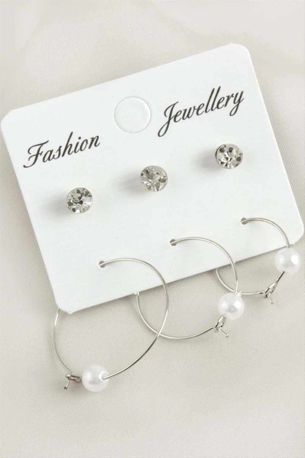 6 Adet İnci Taşlı Halka Küpe 2,5 cm