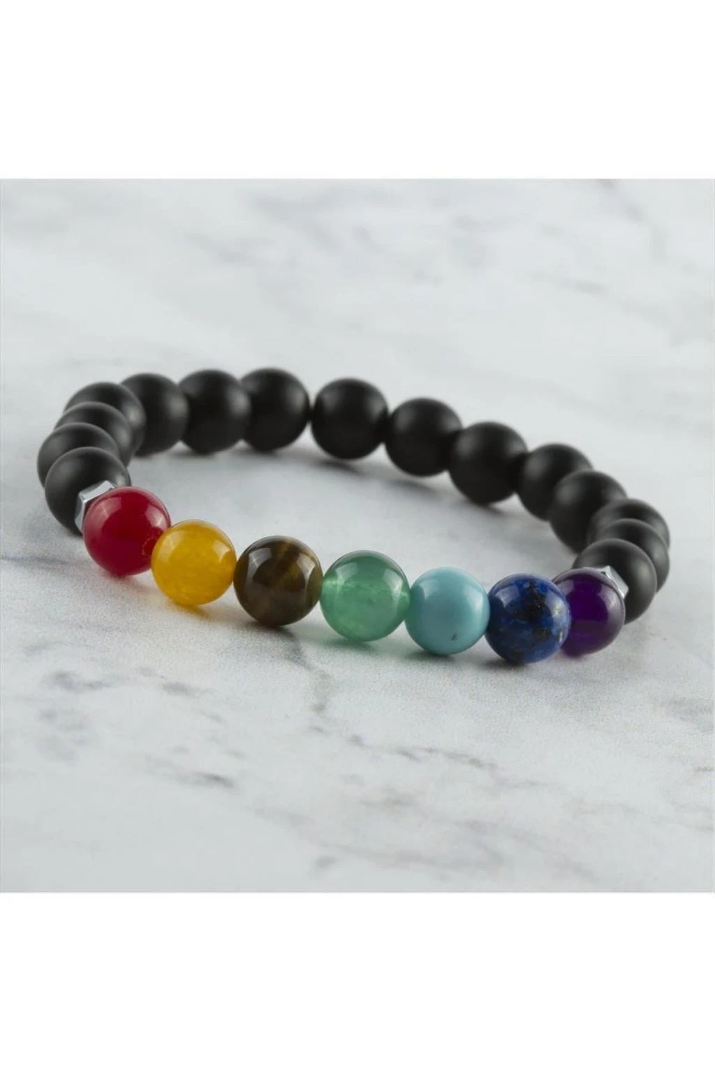 Çakra; Ürün 7 farklı dağaltaştan imal edilmişdir. Ürün boyu 4 cmdir. Çakralar, vücudumuzun 7 ana bölgesinde bulunan enerji bağlantı noktalarıdır. Çakralar, bedenimizde kapakçık görevi üstlenmekte; vücut, zihin ve ruh arasındaki dengeyi ayarlamakta ve enerjinin içeri ya da dışarı akışını düzenlemektedir. 7 Renk çakra taşları; 1.Kök çakrası- hematit taşı 2. alt karın çakrası (sakral) – Akik taşı 3.Mide çakrası (Solar Plek­sus) – Jasper 4.Kalp çakrası – Aventurin 5.Boğaz Çak­ra­sı – Lapis lazuli taşı 6.Alın çakrası (Üçüncü Göz) – Dumanlı Kuvars taşı 7.Taç çakra – Ametist Taşı