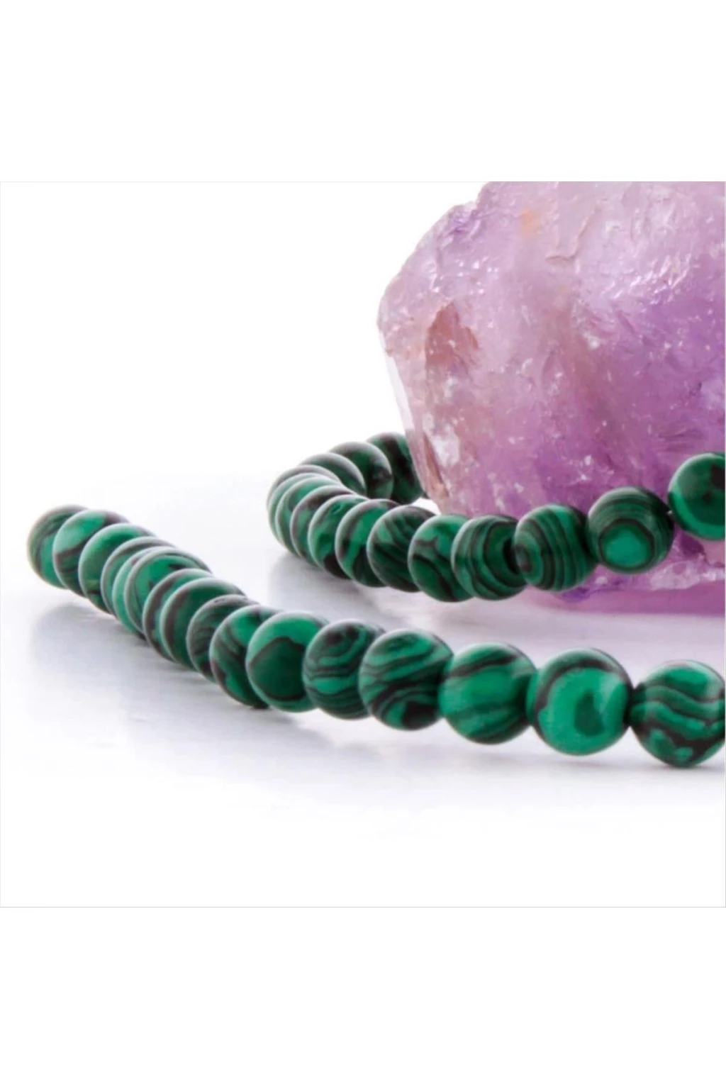 Malahit Taşı; Ürün yapısı parlak ve 8 mm'dir. 1 dizide yaklaşık 50 adet taş vardır.