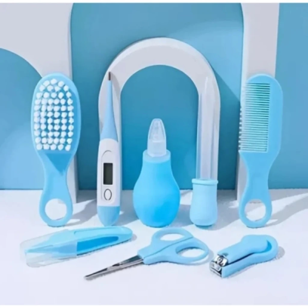 8 PARÇA BEBEK BAKIM SETİ MAVİ RENKÜrün Özellikleri8 Parça Bebek Bakım Seti, bebeklerin temel kişisel bakım ihtiyaçlarını karşılamak için özel olarak tasarlanmış bir settir. Günlük kullanımda ebeveynlerin işini kolaylaştırır. Set içinde yer alan tırnak makası, bebeklerin hassas tırnakları için güvenli ve ergonomik bir yapıda tasarlanmıştır. Makas uçları yuvarlatılmıştır, bu sayede bebekler için güvenli kesim sağlar. Cımbız ise bebek kulakları ve burun gibi hassas bölgelerde hijyen sağlamak amacıyla kullanılır. Burun aspiratörü, bebeklerin burunlarını nazikçe temizlemek için idealdir. Fırça, yumuşak kılları ile bebek saç ve saç derisine zarar vermezken, tarak düğümsüz ve nazik bir tarama deneyimi sunar. Termometre, vücut sıcaklığını dijital olarak ölçer. Damla şırıngası (damlalık), ilaç veya sıvı takviyelerini hassas şekilde vermek için kullanılır. Bu set, yenidoğan ve küçük bebeklerin kişisel bakımlarını düzenli şekilde yapabilmek için ideal bir çözümdür. Ayrıca, seyahatlerde veya günlük kullanımda pratiklik sağlar ve genellikle taşıma çantasıyla birlikte gelir.Paket İçeriği1 adet 8 Parça Bebek Bakım Seti Mavi Renk