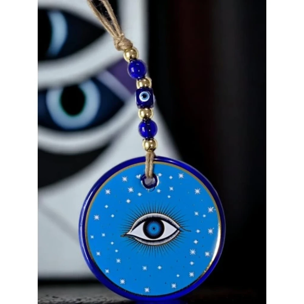 Mavi renk yıldız motifli göz süsümüz nazar boncuğu ile süslenmiştir. Ürünümüz mavi cam nazar boncuğundan tamamen el işçiliği ile üretilmiştir. Ürünümüzün yuvarlak kısmı 13 santimetre çapındadır. Duvar süsümüz ip dahil yaklaşık 30 santimetre boyundadır. El yapımı füzyon camdan üretilen açık mavi yıldızlı göz model duvar süsümüz, minimalist ve şık tasarımıyla dikkat çekiyor. Duvarınıza asarak evinizde ferah ve aydınlık bir atmosfer yaratabilirsiniz.
