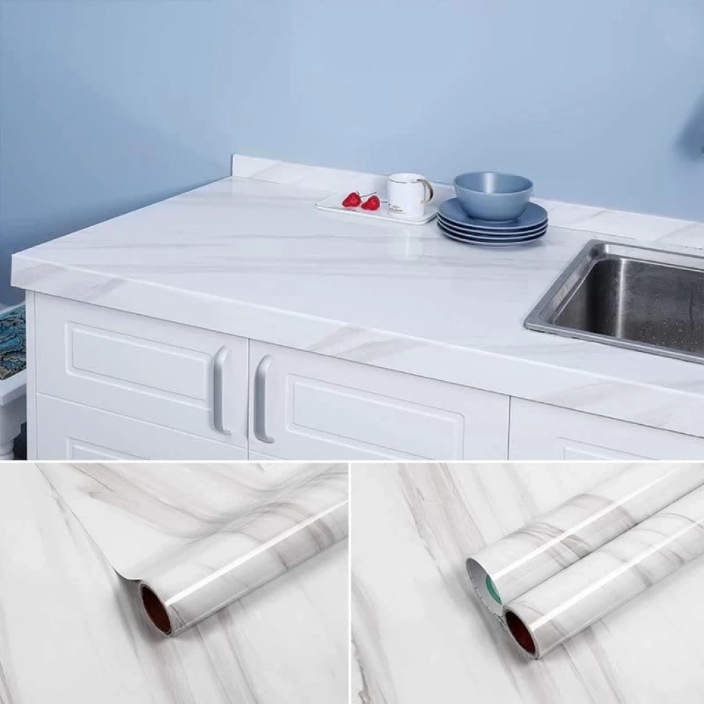 Açık Mermer Desenli Yapışkanlı Kaplama Kağıdı Büyük Boy 5 Metre